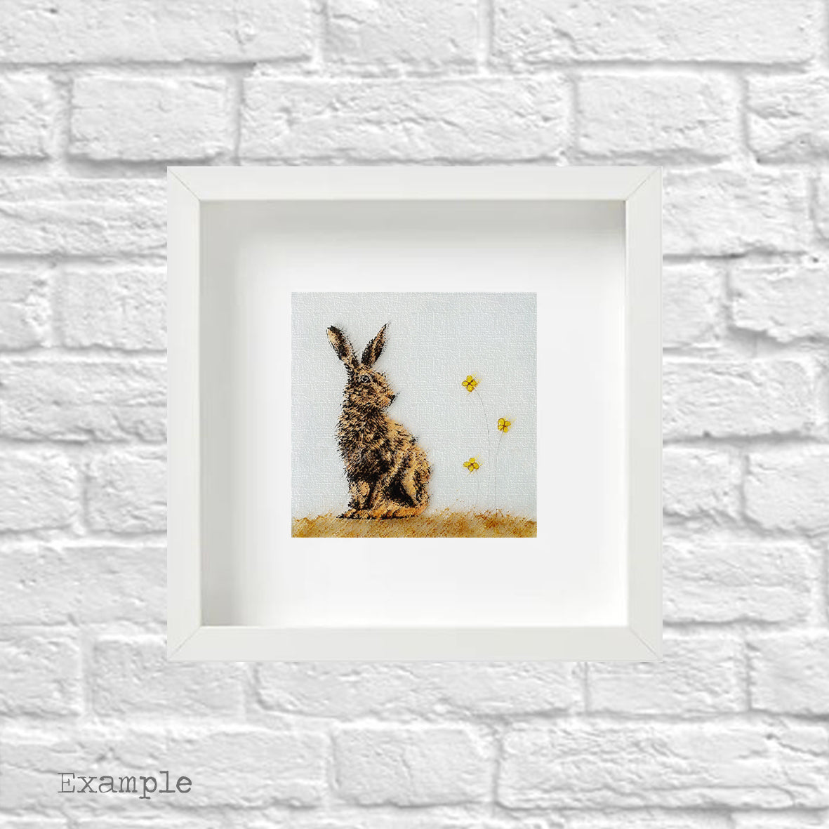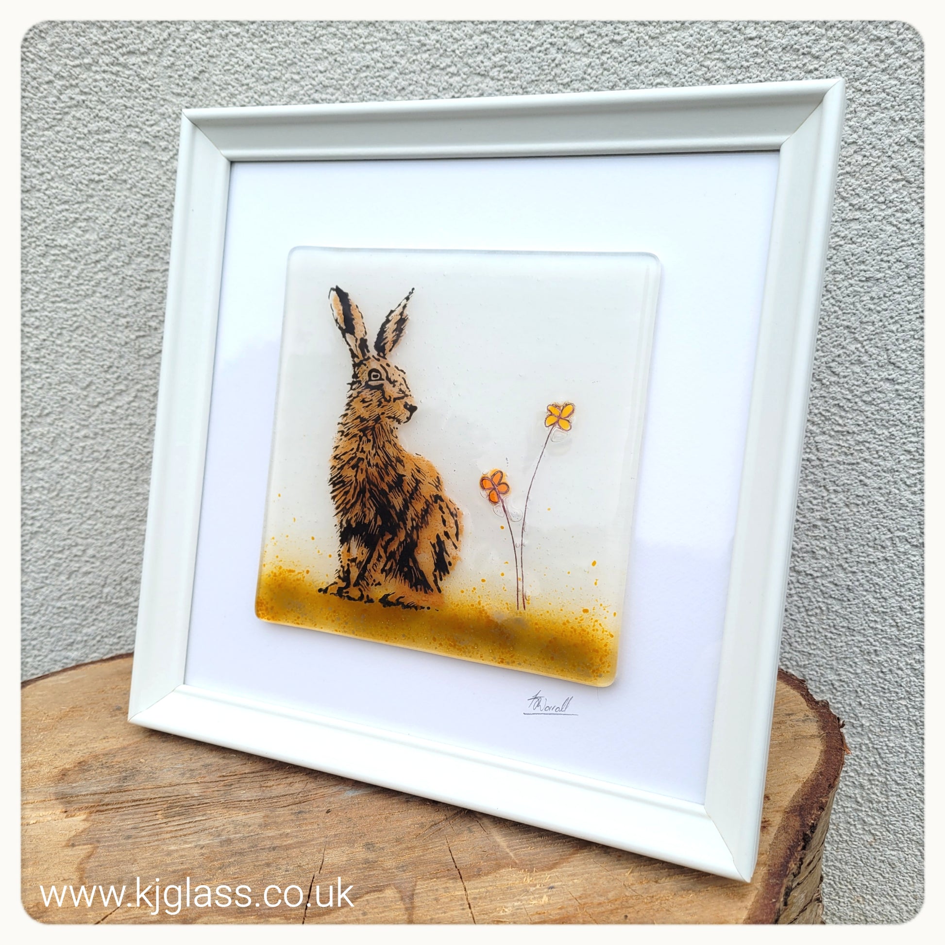 Enough coloured glass powders are incorporated to create an opaque image. The glass is sandblasted on the back with ground edges for a smooth touch. The fused glass is securely fixed to a backing glass fitting the frame, you will not see any specialised adhesive used. Frame 23x 23cm, fused glass piece approx 15x 15cm.