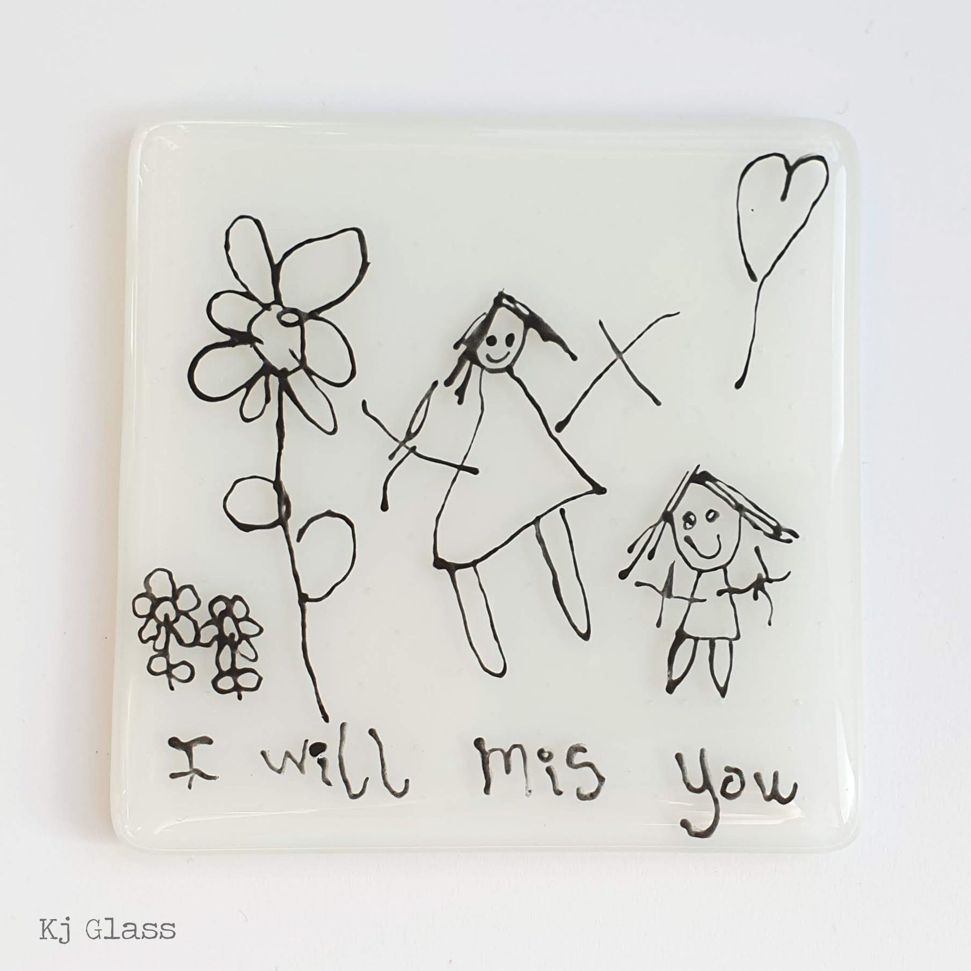 Hand drawn copy of your image transferred onto specialised glass. The glass is sandblasted on the back with ground edges for a smooth touch. Comes complete with those all important bumpers to protect any surface. Due to bumpers this product is not ideal for dishwashers. Hand washing is advised. (Single coaster)