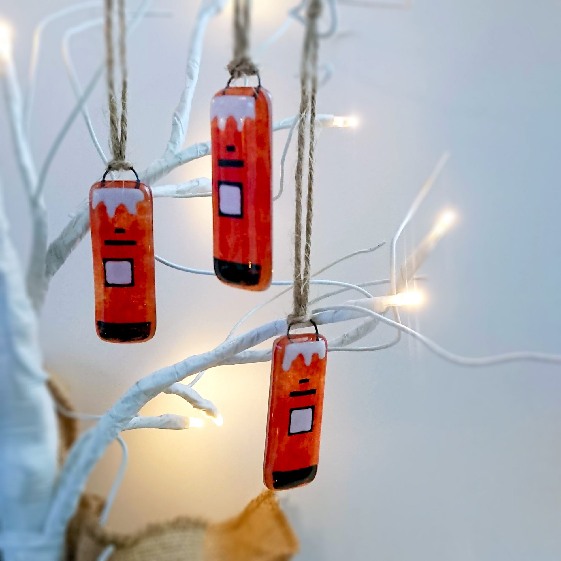 The glass is sandblasted on the back with ground edges for a smooth touch. The decorations themselves are approximately 6cm and can be commissioned to any colour scheme in case the colour you desire is not listed.