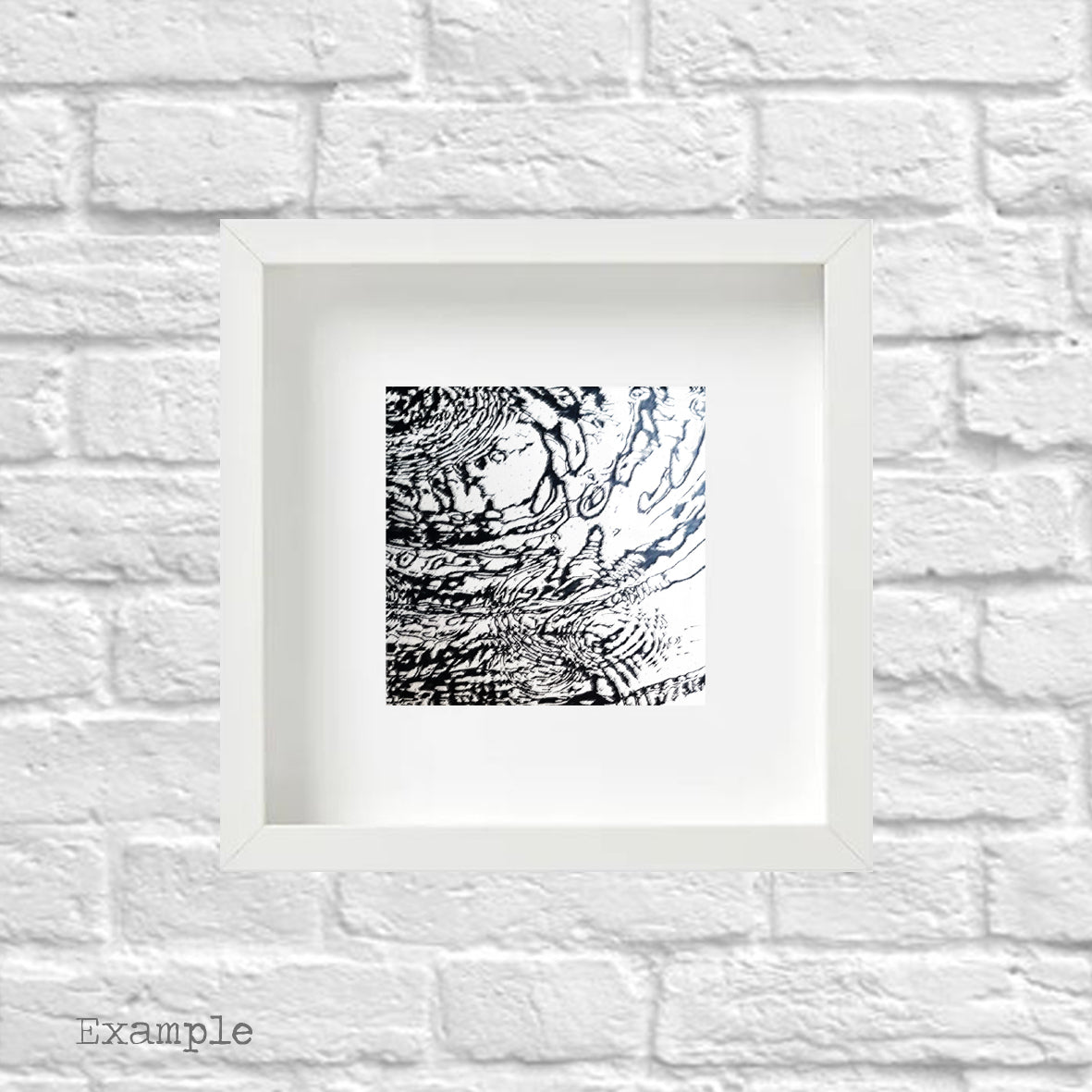 Enough coloured glass powders are incorporated to create an opaque image. The glass is sandblasted on the back with ground edges for a smooth touch. The fused glass is securely fixed to a backing glass fitting the frame, you will not see any specialised adhesive used. Frame 23x 23cm, fused glass piece approx 15x 15cm.