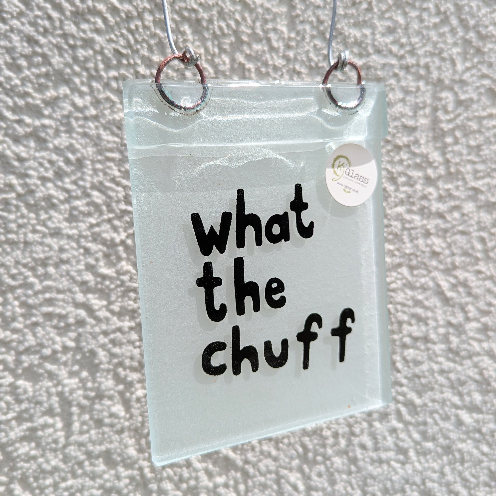 Add a touch a humour to your home with this quirky glass hanging plaque. Perfect as a fun gift or unique accent piece for your own space. The plaque is finished with trapped copper rings and a wire hanger making it easy to display on walls, door or hooks.
